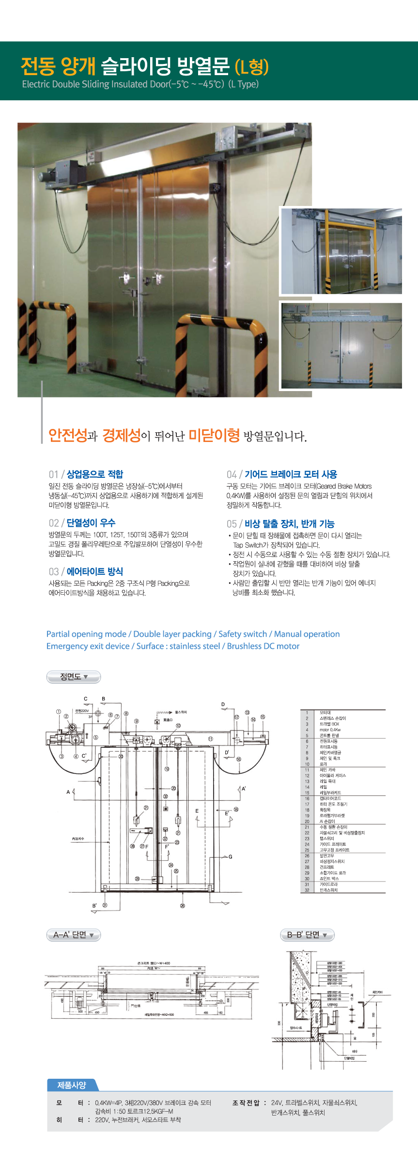 전동 양개 슬라이딩 방열문 (L형)