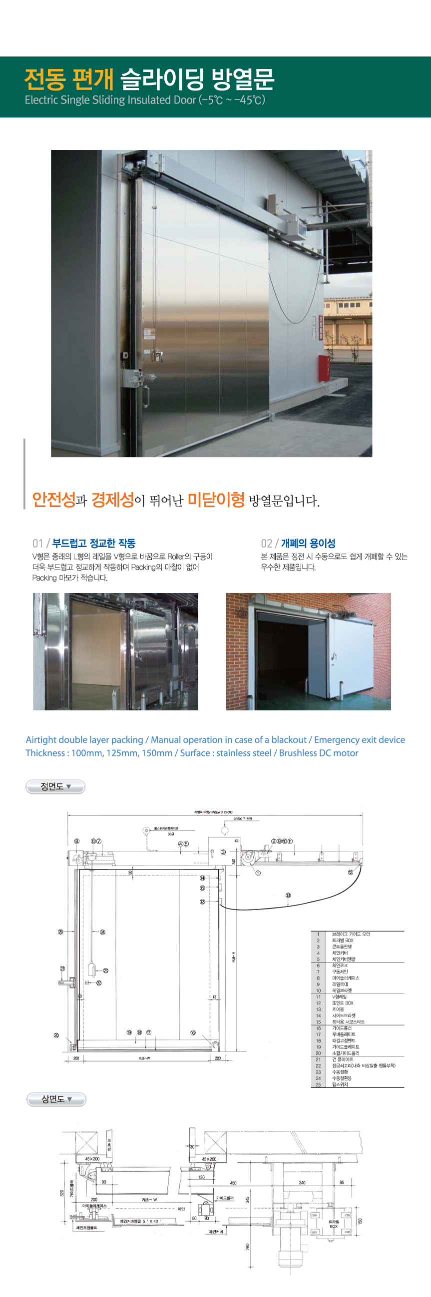 전동 편개 슬라이딩 방열문