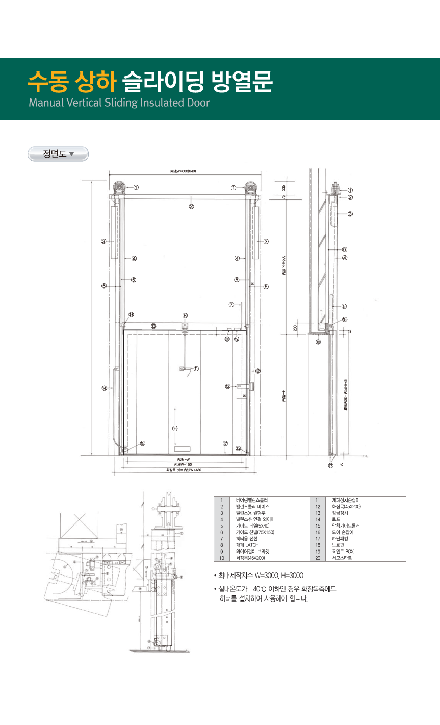 수동 상하 슬라이딩 방열문