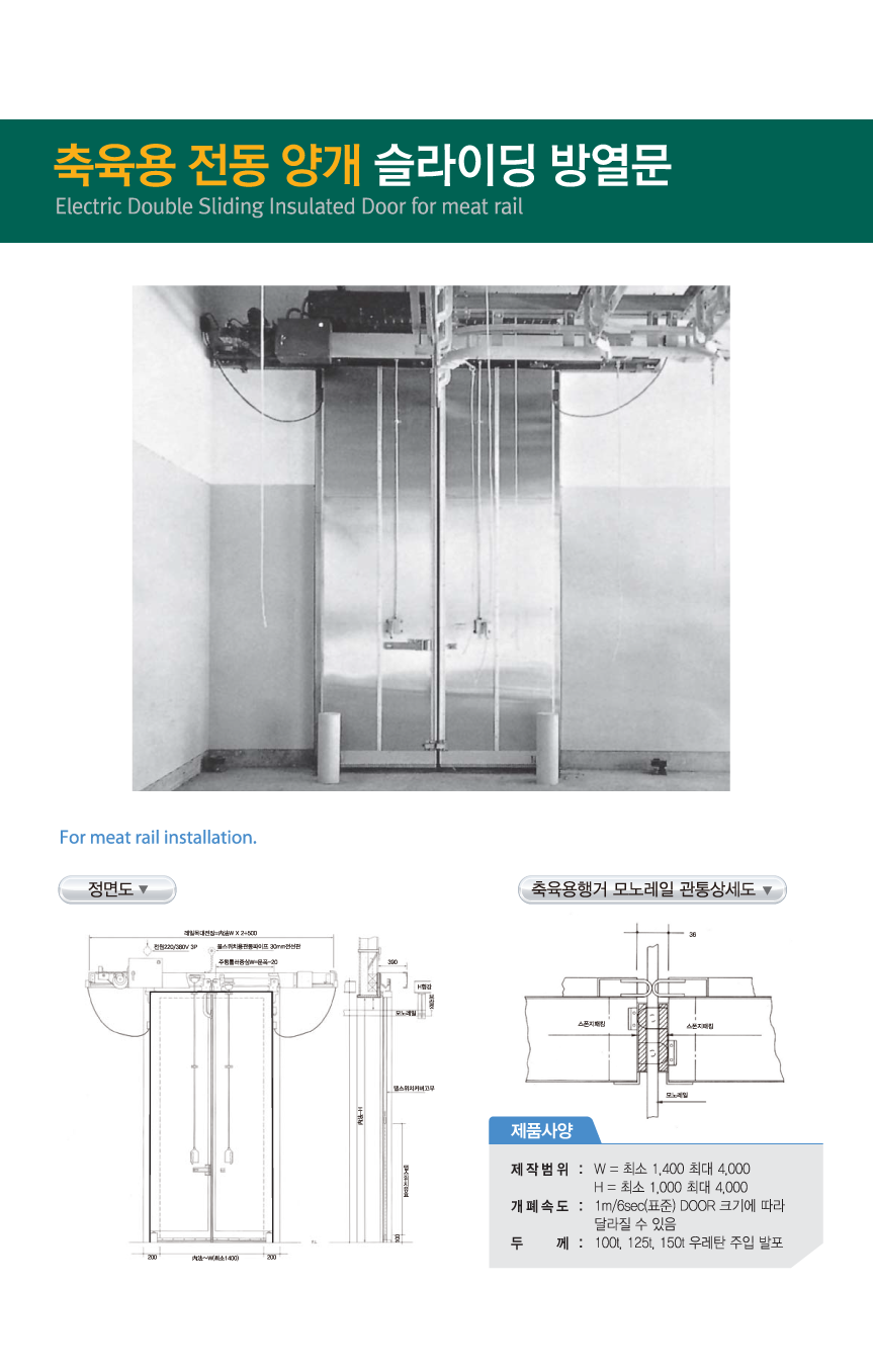 축육용 전동 양개 슬라이딩 방열문